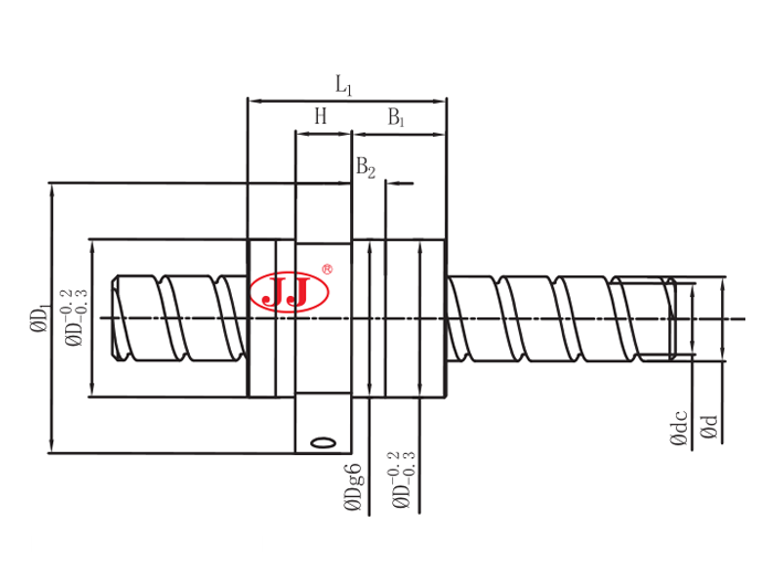 | 公称型号 | 丝杆轴外径d | 导程l | 钢球中心直径dp | 丝杆轴沟槽直径dc | 负载圈数